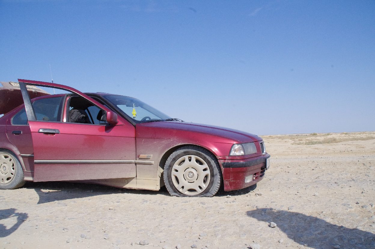 Das gibt den endgültigen Ausschlag, die andere Strecke zu fahren: er hat kein Reserverad mehr.