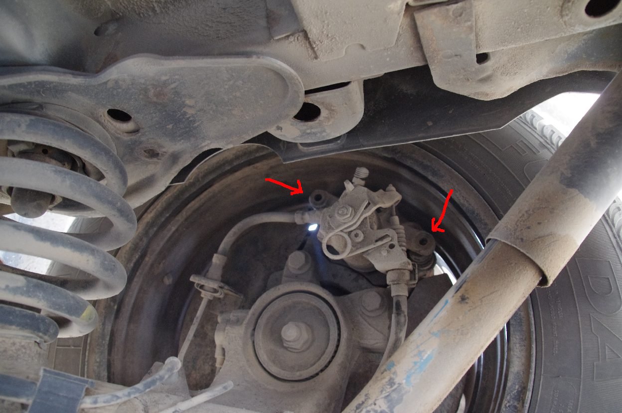 Bremse hängt in der Luft: beide Schrauben haben sich rausgeschüttelt.