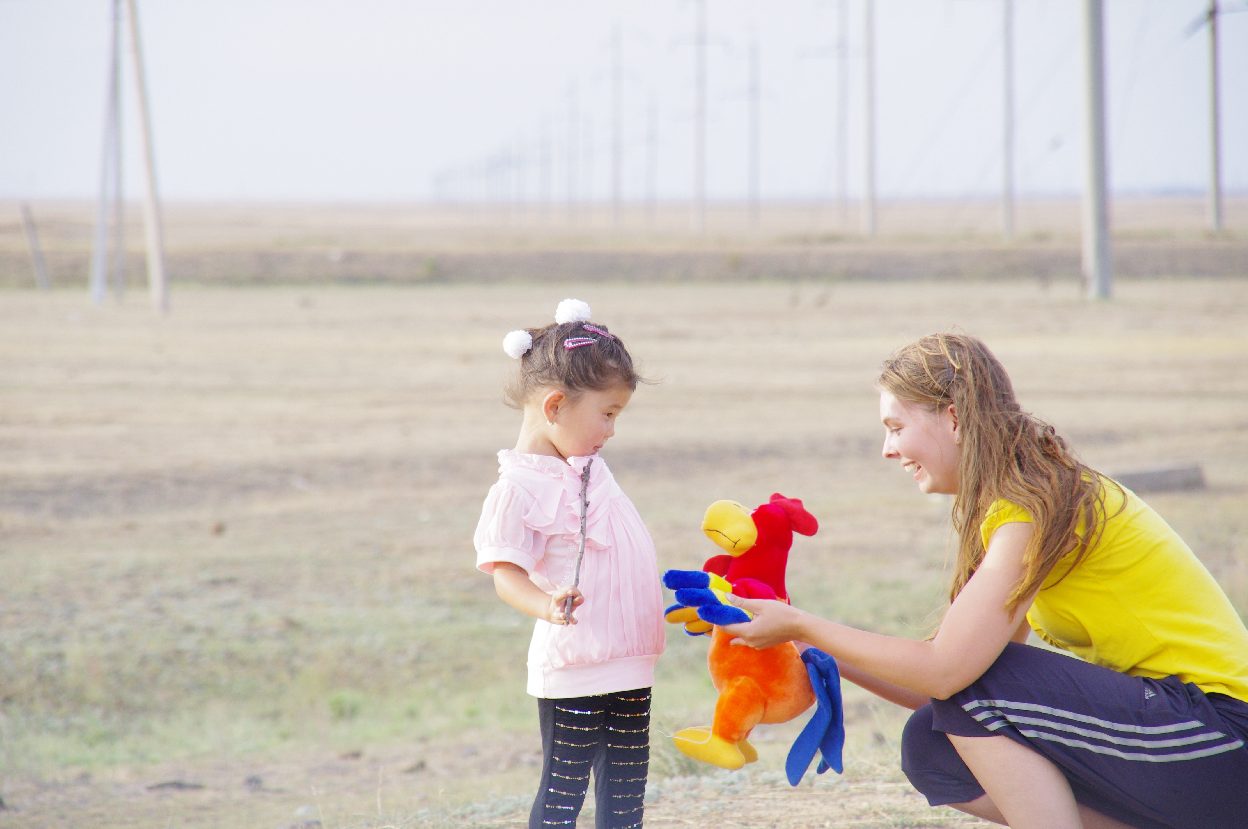 Die Kinder freuen sich über die Stofftiere von Alexandra.